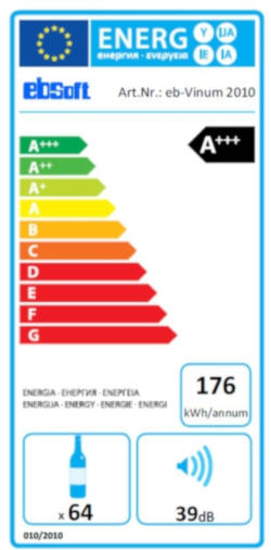 • Energieaufkleber für Weinkühler und Kühlschränke. Der wiederablösbare Kleber garantiert ein Rückstandsfreies Entfernen des Labels